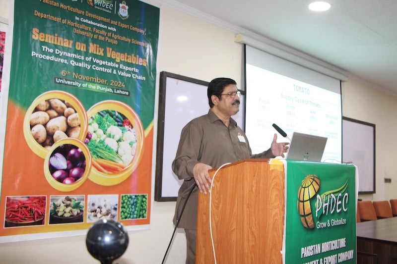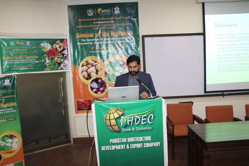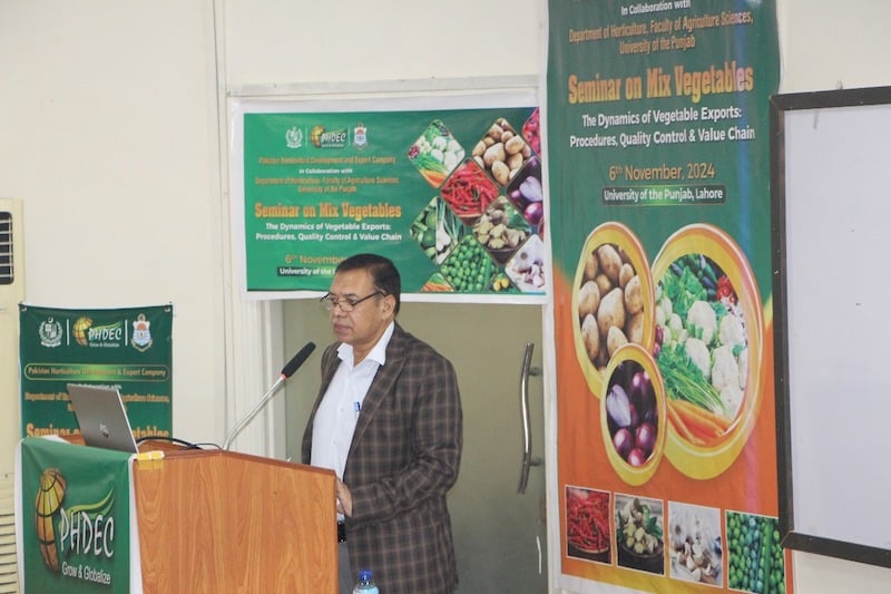 PHDEC hosted a pivotal seminar on “The Dynamics of Vegetable Exports: Procedures, Quality Control & Value Chain” at the IAS auditorium, University of the Punjab, Lahore. The session addressed Pakistan’s surge in vegetable exports—reaching 1.126 million metric tons valued at $430 million in the FY ending June 2024—and the growing need for compliance with international standards.
