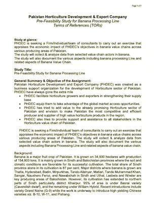 (TORs) Pre-feasibility study for Cold Storages at Exit Ports