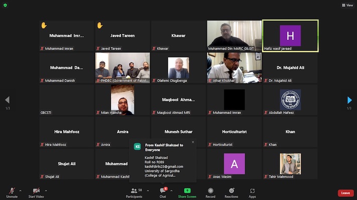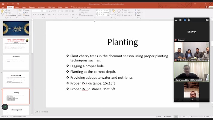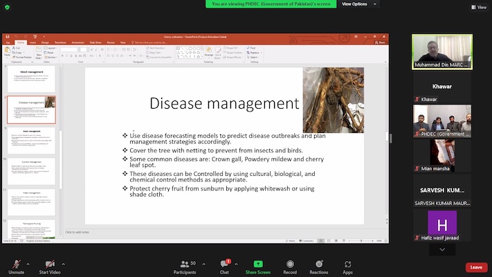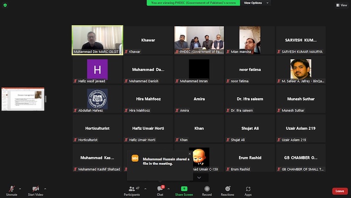 The webinar on “Cherry Orchard Management for Good Quality & Yield was held today to educate cherry farmers/growers on the importance of harvesting and handling. Mr. Muhammad Din from Principal Scientist, Mountain Agricultural Research Centre, Juglot, GilgitBaltistan gave a detailed overview of cherry orchard management with special emphasis on fruit setting, fruit development, insect/pest & disease management and nutrition management. He emphasized on regular monitoring of these issues in the orchards and suggested to follow the recommendations especially in the month of June for having better Yield and improved quality of cherry fruit. Mr. Akbar Shah, Senior Vice President, Gilgit Chamber of Small Traders & Industry presented statistics of Cherry production, its varietal spread and associated issues of nurseries and data. The webinar was attended by growers, processors, exporters, R&D and academia associated with Cherry from all over Pakistan.