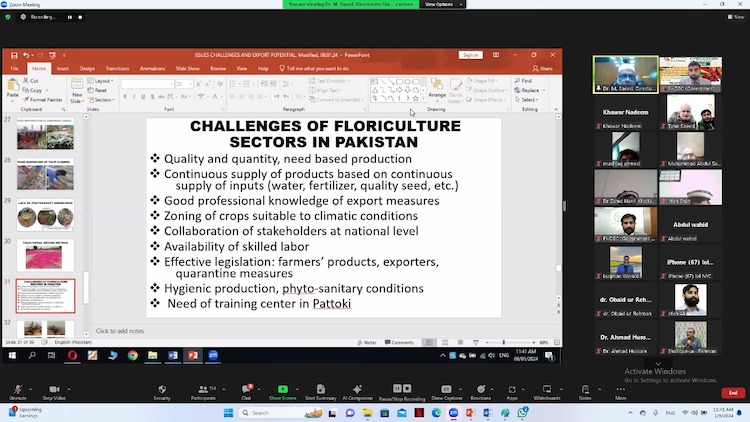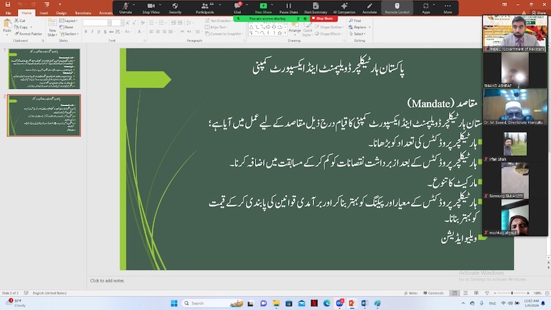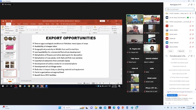 Webinar on “Floriculture Sector in Pakistan: Issues, Challenges & Export Opportunities” aimed to provide guidance to progressive farmers and potential exporters on the lacunas of exporting fresh or dried flowers from Pakistan. Director Floriculture (Training and Research) from Agriculture Department Punjab, shed light on critical issues such as the availability of appropriate facilities for harvest and post-harvest management, inadequate storage facilities, outdated methods in processing/packing and the non-availability of cold chain facilities. He further emphasized the continued development of exports for high-quality flowers and bulbs into overseas markets with a special focus on roses for oil extraction. We at PHDEC extend a heartfelt thank you to the guest speaker and all participants who made this a success! Your enthusiasm and commitment to the growth of the floriculture sector in Pakistan are truly commendable.