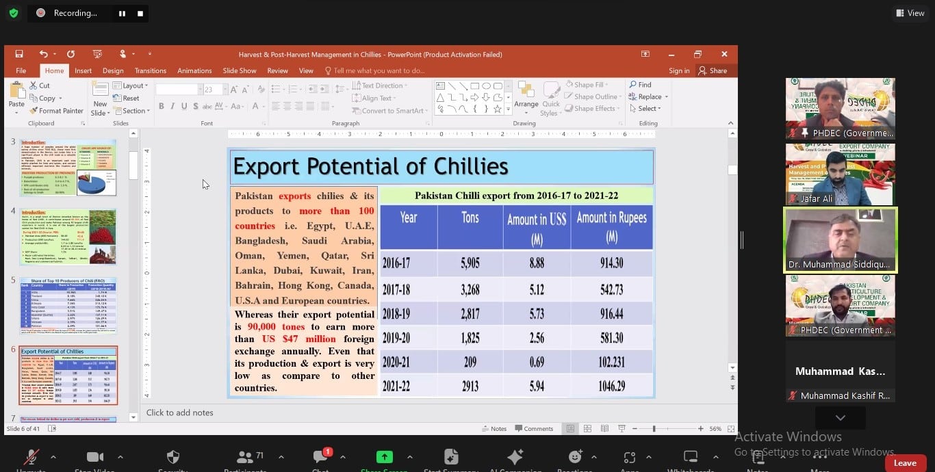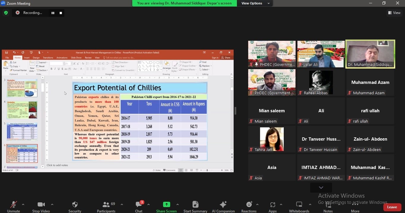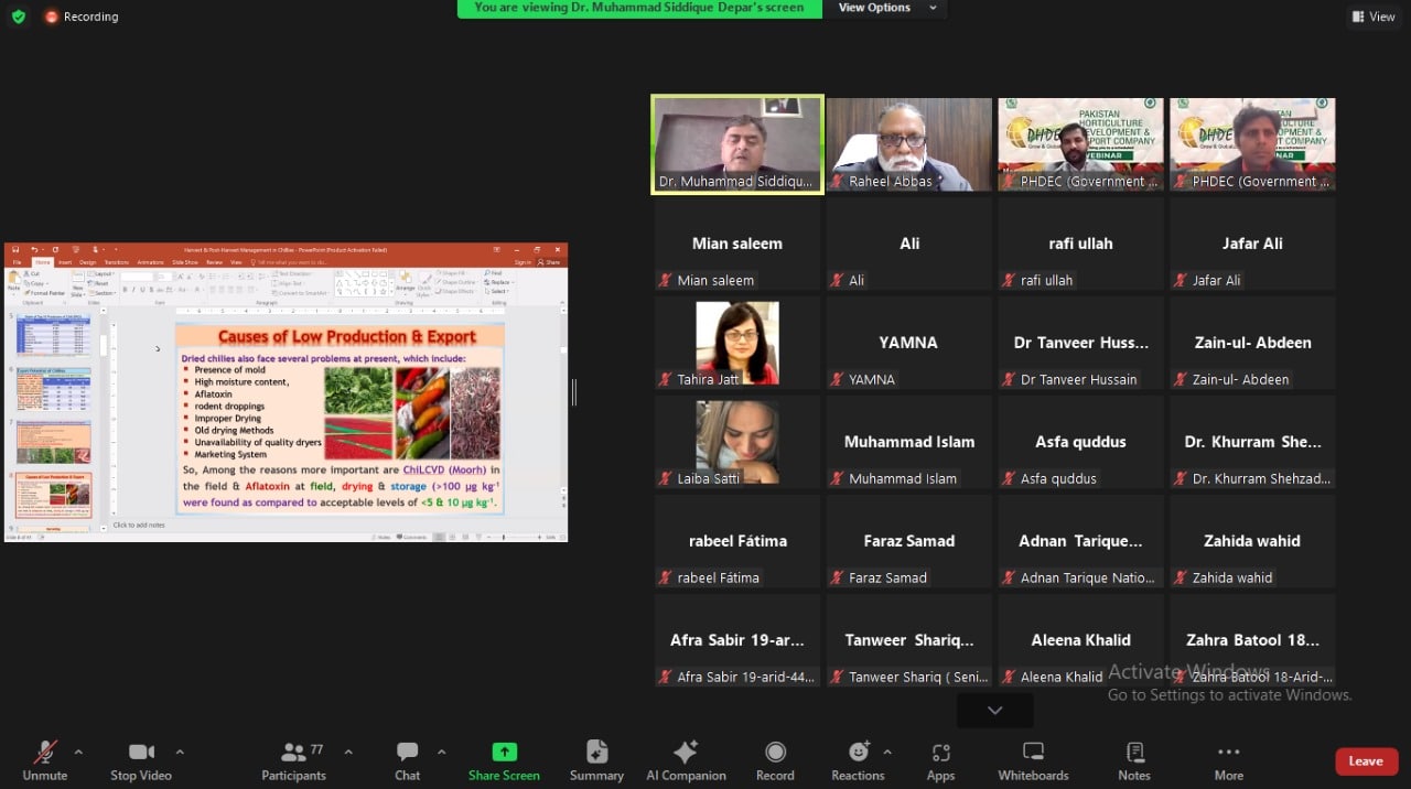 Today, PHDEC took a much needed step towards boosting Chilli production in Pakistan. The webinar delved into the intricacies of harvest and post-harvest management of chillies in Pakistan. The goal? To unite stakeholders for a comprehensive discussion on minimizing post-harvest losses and ensuring top-notch quality Chillies for both domestic and International markets.