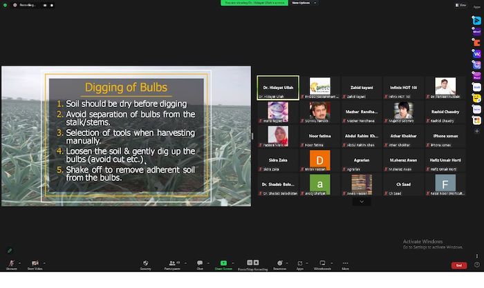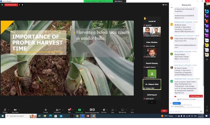 Experts from NARC, Islamabad and PMAS Arid Agriculture University Rawalpindi presented the importance of harvest time, maturity indices, harvest process, methods of harvesting, curing & storage, drying methods and preservation techniques for garlic in Pakistan.