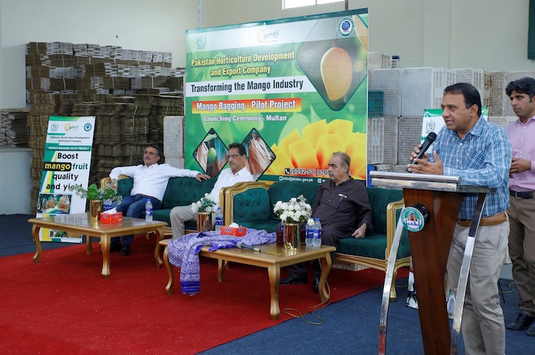 After the successful launch of its “Pilot Project on Mango Bagging” in Sindh, PHDEC launched the second phase of “Mango Bagging” at Lutfabad Mango Farms, Multan. Selective progressive Mango growers/exporters of Multan region were invited to take part in the launching. Mango Bagging has important commercial benefits in reducing postharvest diseases & damages, preservation of fruit’s color, reduction in spraying additional pesticides, protection of the fruit from birds and insects and protection from climate change hazards.