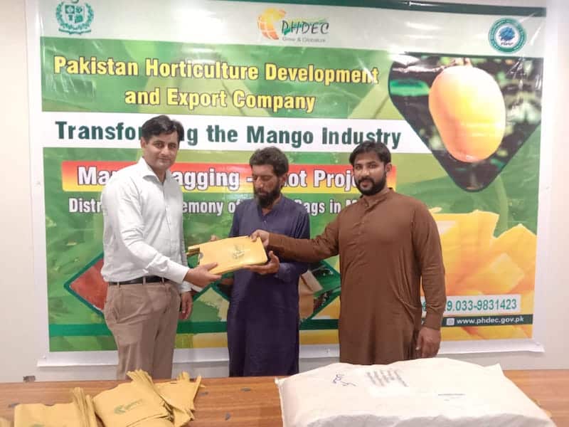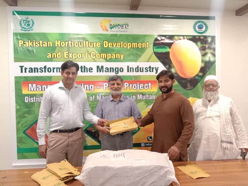 Today (May 15, 2024), the Pakistan Horticulture Development and Export Company (PHDEC) distributed approximately 80,000 mango bags to progressive growers in Multan and Rahim Yar Khan (RYK).