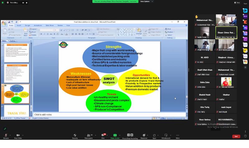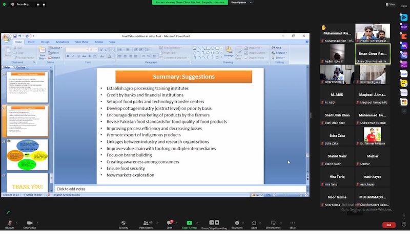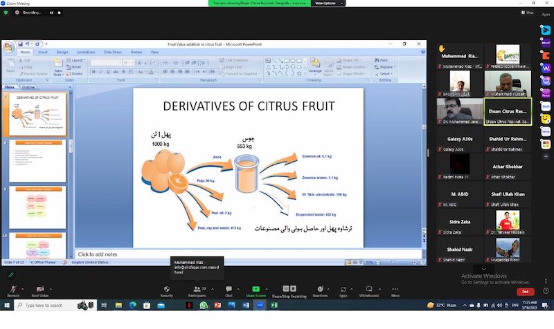 The purpose of the webinar was to share possible interventions in value-addition of citrus. Target audiences of the webinar were processors, progressive growers, R&D and private companies. The stakeholders were from all over the Pakistan.